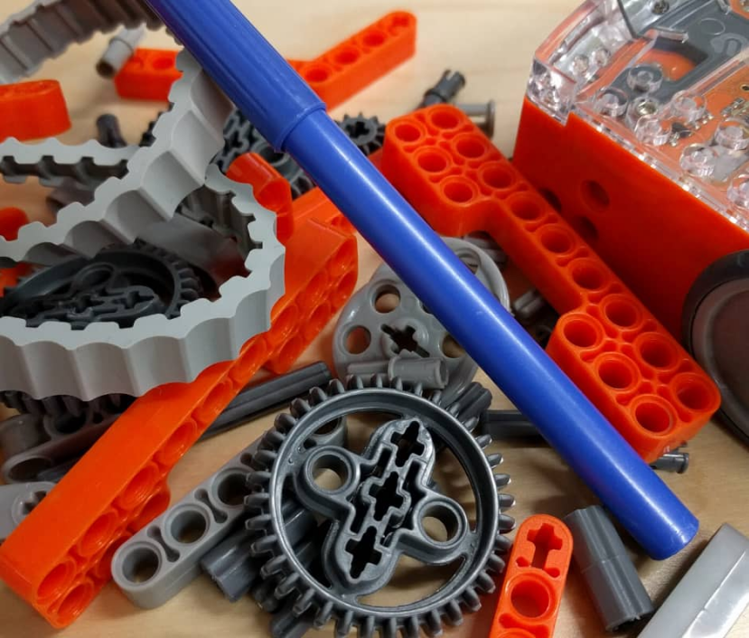 1 x Edison robot with internal rechargeable battery 3 x skids (1 x attached to the robot, 2 x spare skids located in the packaging) 2 x wheels (attached) 2 x tyres (attached) What’s included in each EdCreate bag? 115 interlocking building blocks, pegs, gears, and other parts